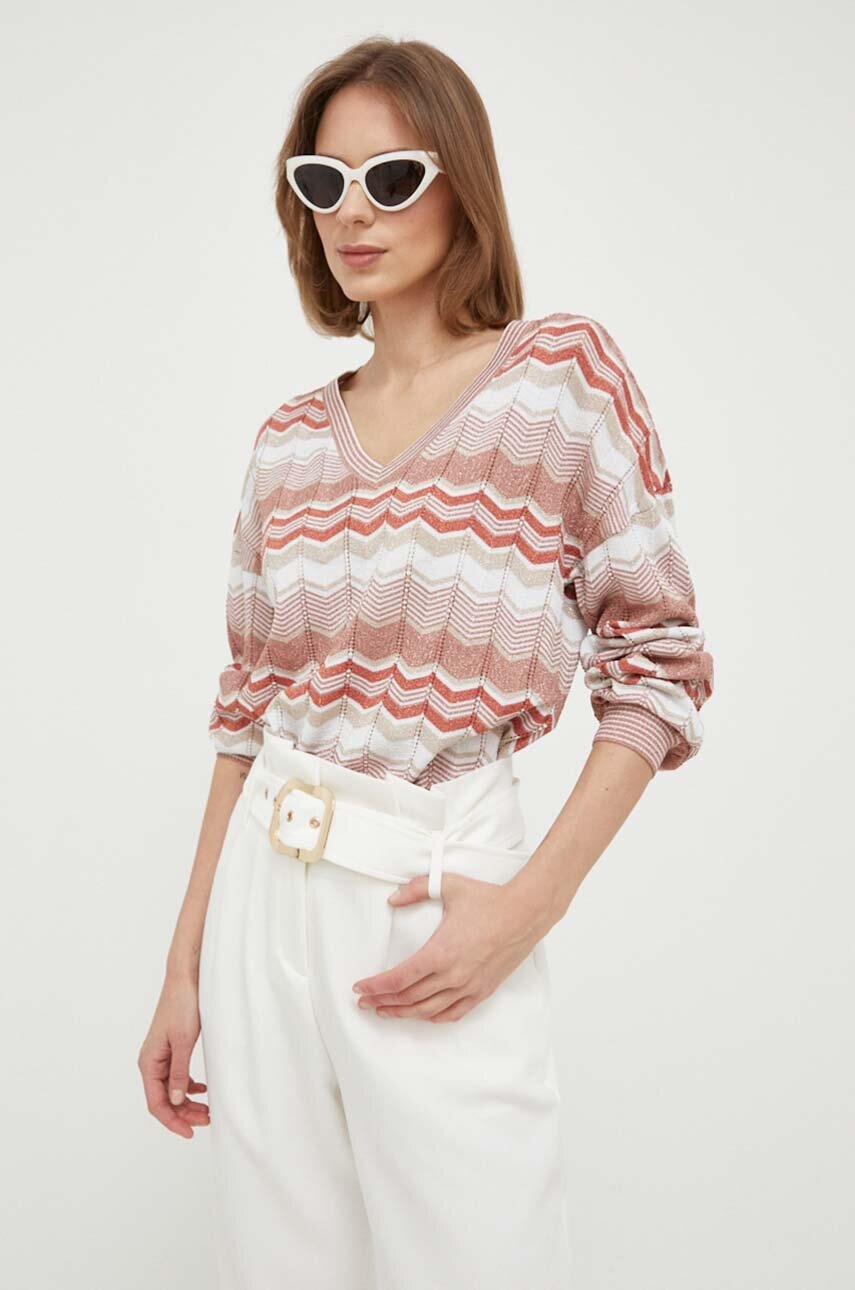 Pulover din colecția Morgan confecționat din tricot ornamentat. Material impresionant, lucios, cu fir metalic.