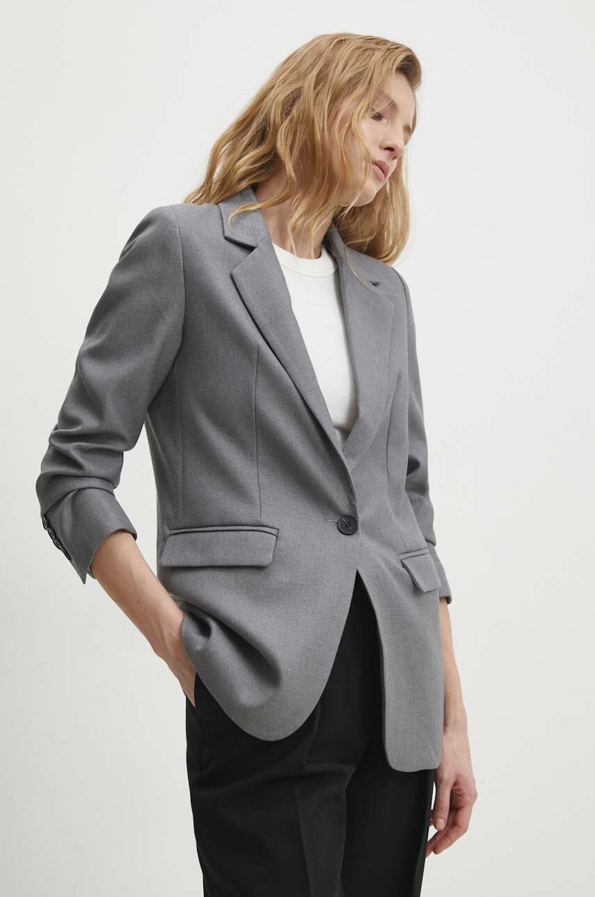 Answear Lab sacou culoarea gri, un singur rand de nasturi, neted