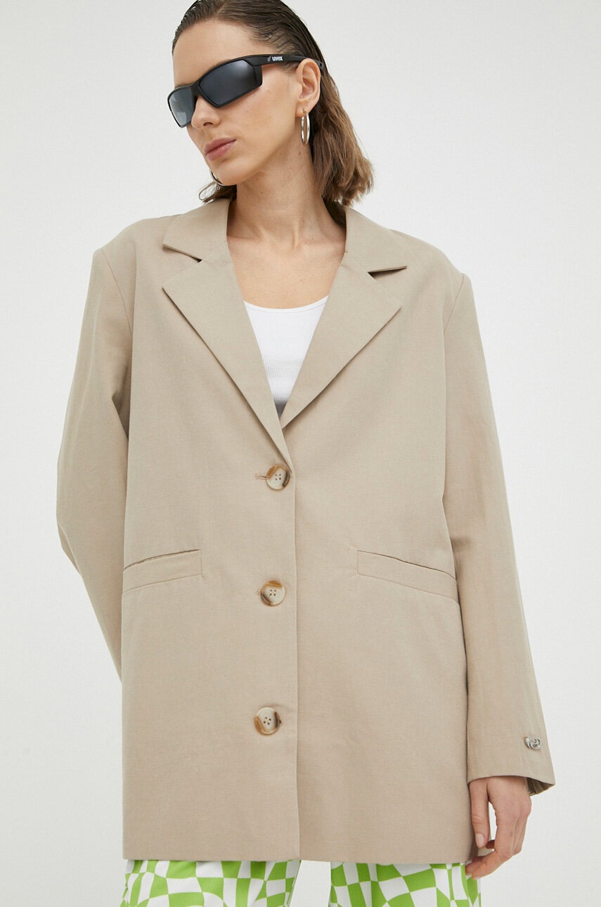 Gestuz blazer din amestec de in PaulaGZ culoarea bej, cu doua randuri de nasturi, neted