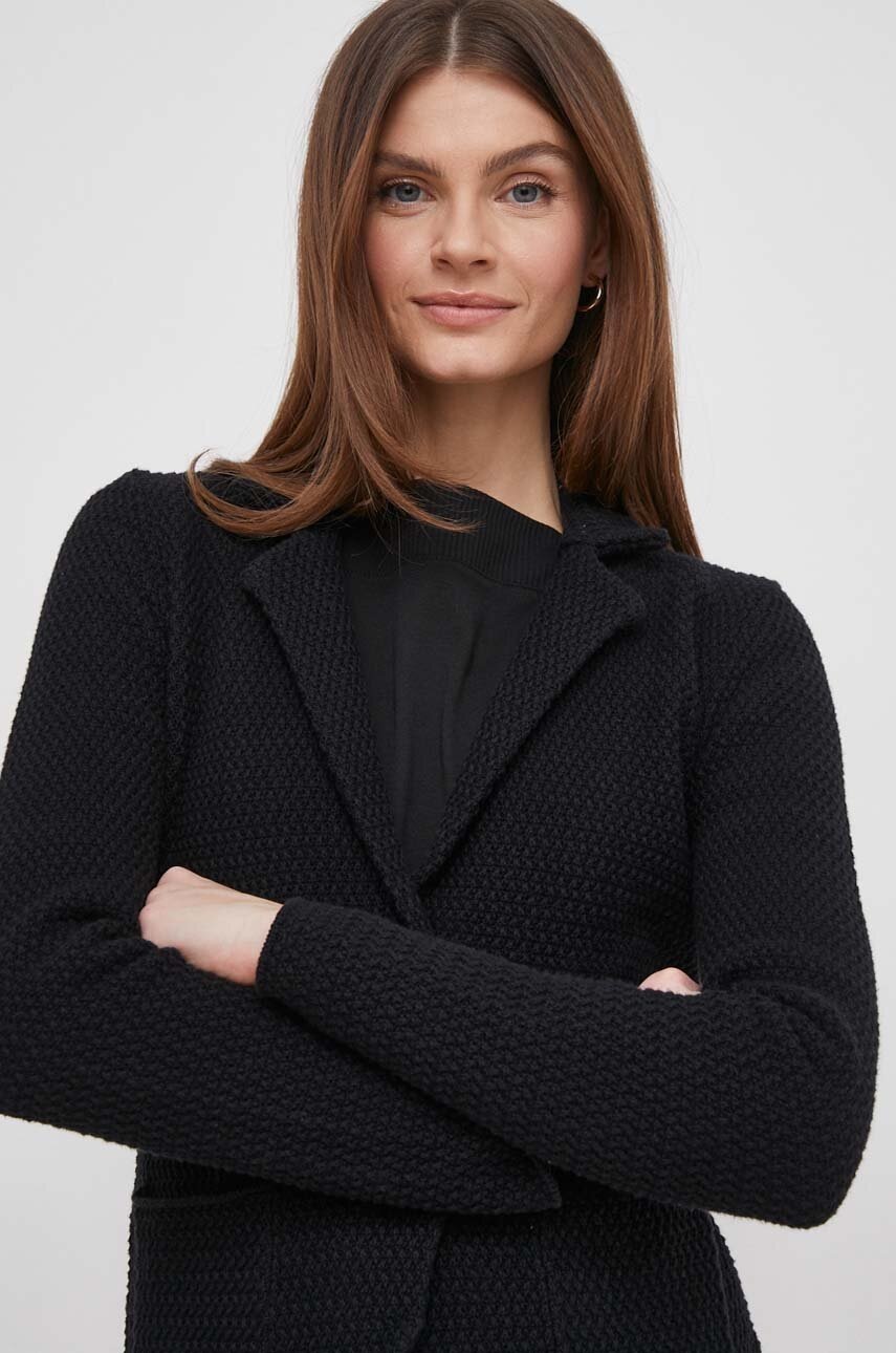 Sisley sacou din bumbac culoarea negru, un singur rand de nasturi, neted