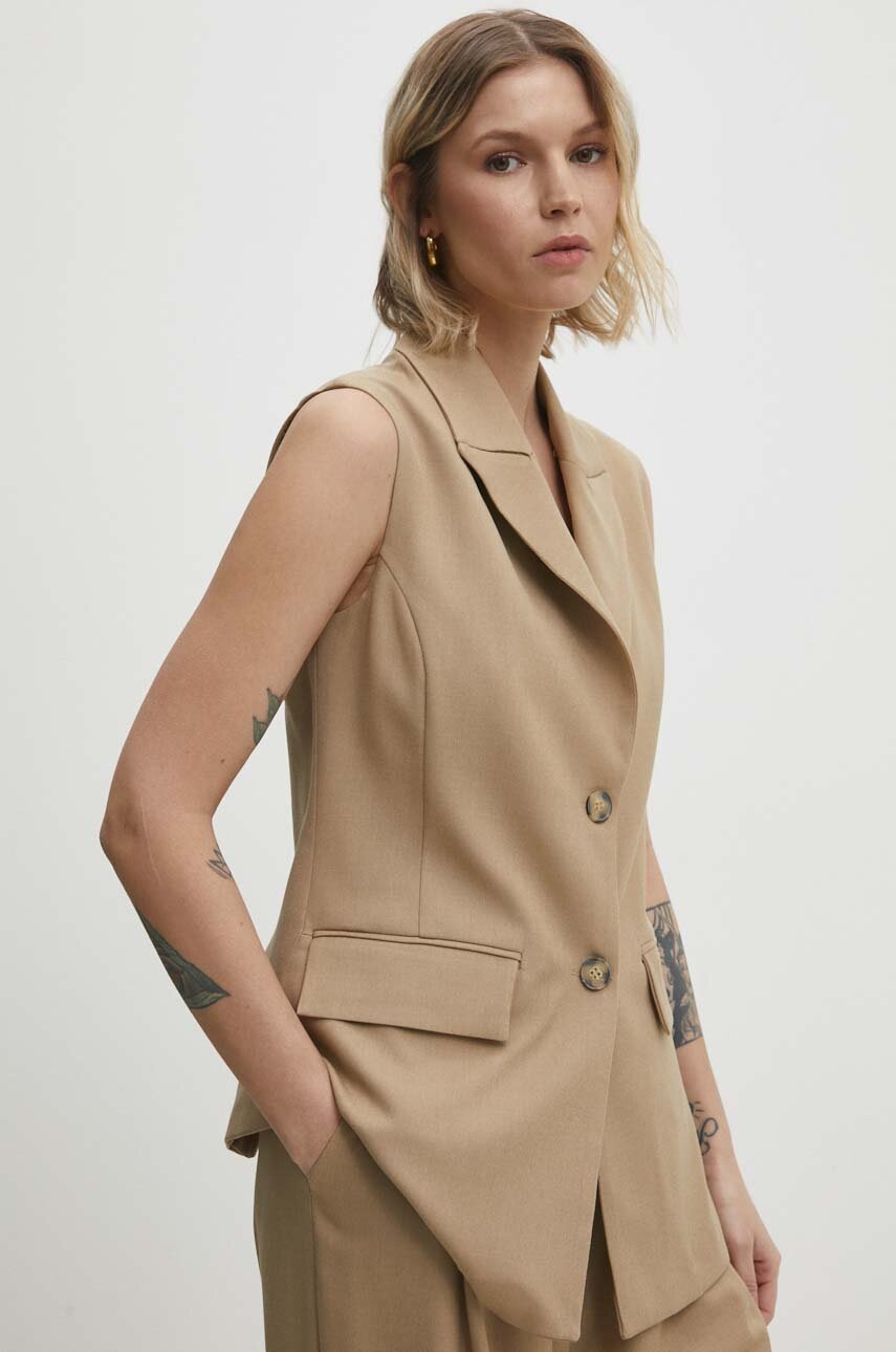 Answear Lab vesta culoarea bej, un singur rand de nasturi