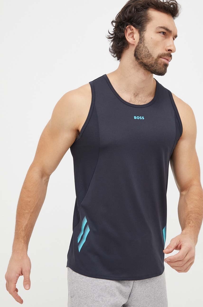 Tricou fara maneci din colecția Boss Green confecționat din plasă. Materialul extrem de elastic care garantează libertate deplină de mișcare.