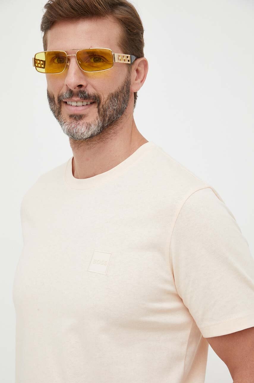 BOSS tricou din bumbac BOSS CASUAL culoarea bej, neted