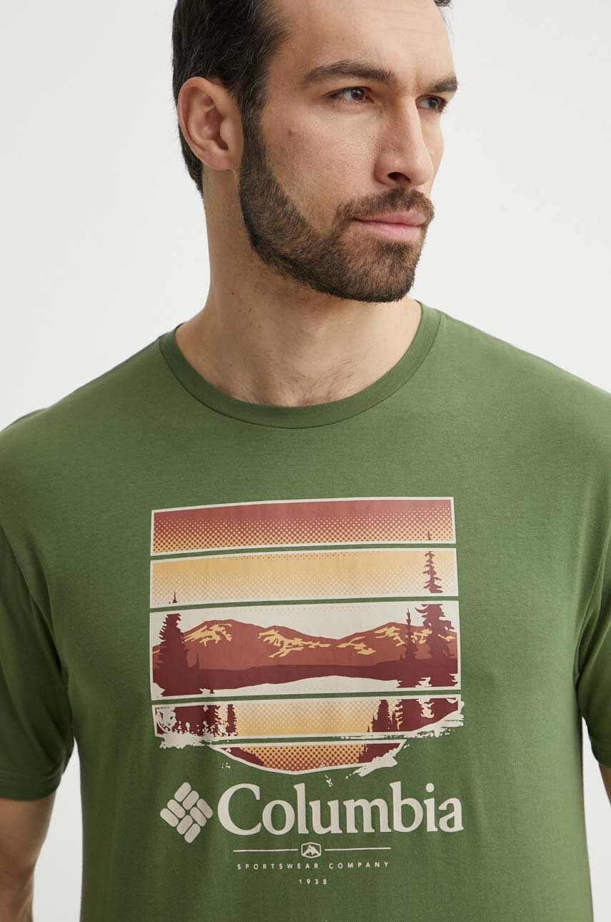 Columbia tricou din bumbac Path Lake bărbați, culoarea verde, cu imprimeu 1934814