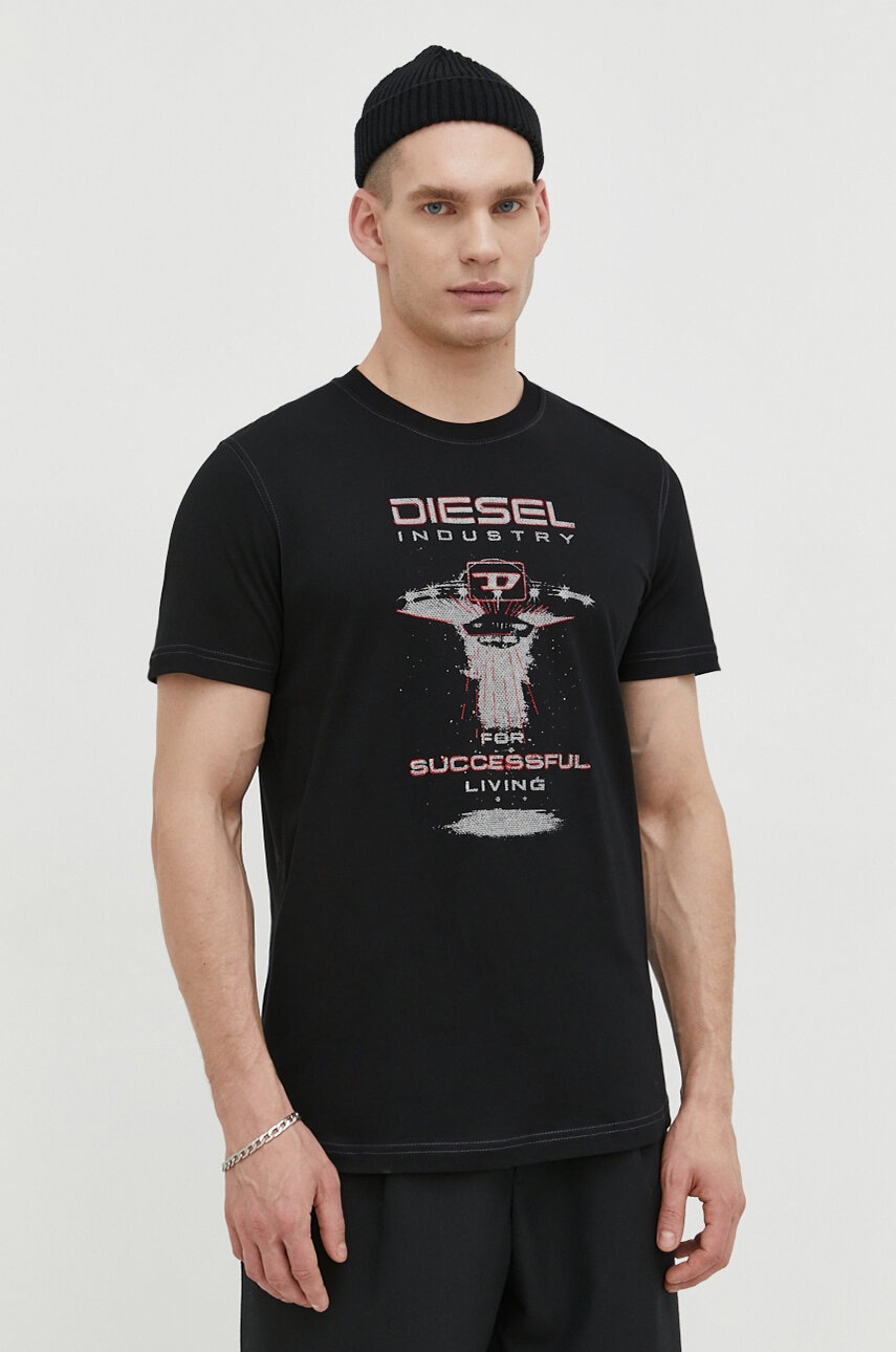 Diesel tricou din bumbac barbati, culoarea negru, cu imprimeu