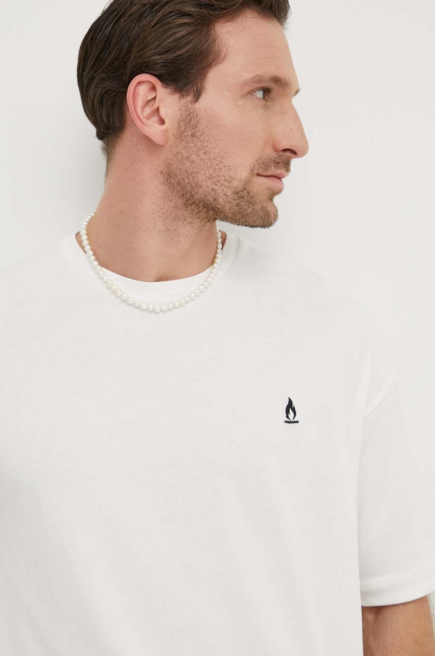 Drykorn tricou din bumbac barbati, culoarea bej, cu imprimeu