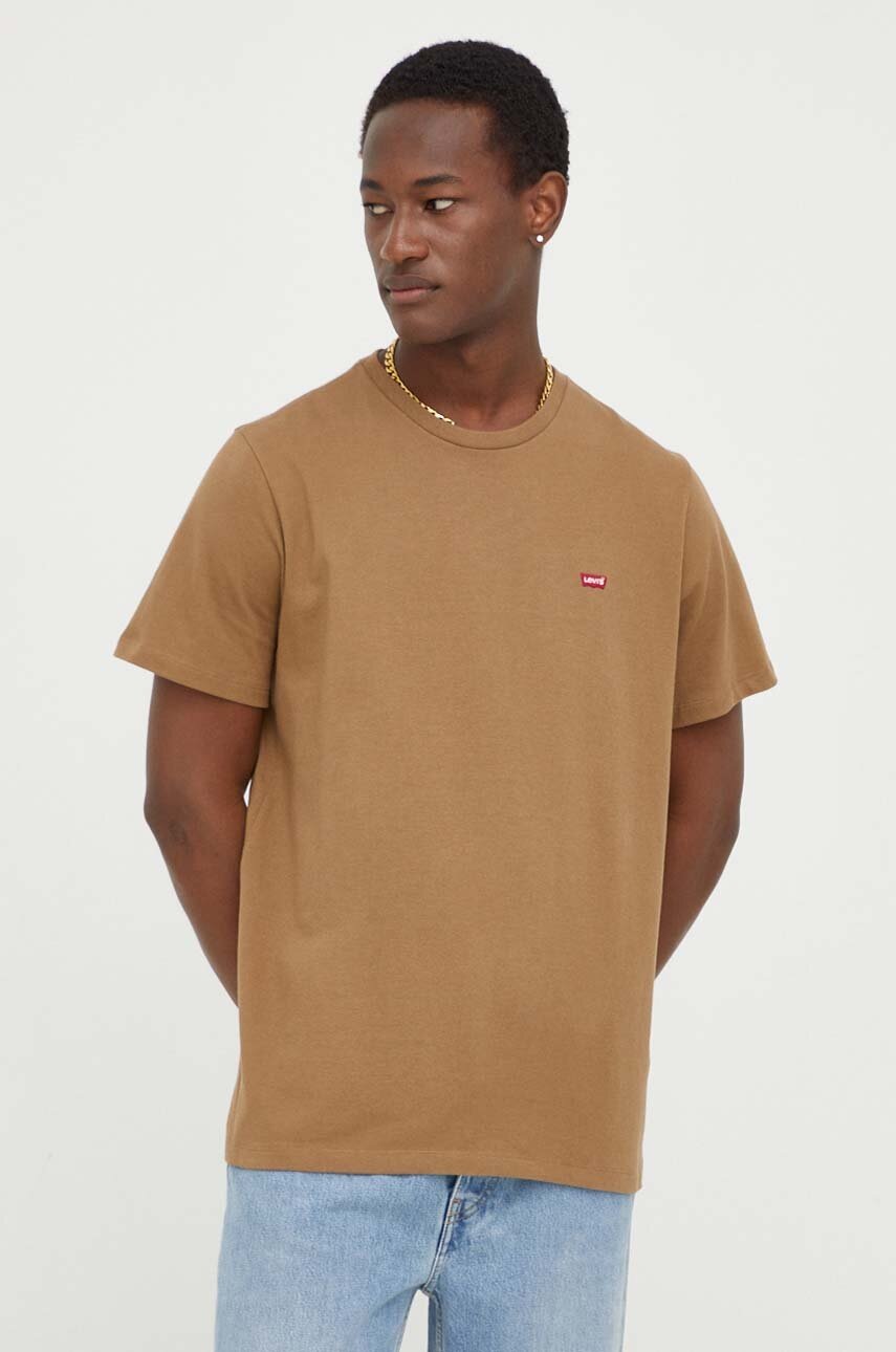 Levi’s tricou din bumbac barbati, culoarea maro, neted