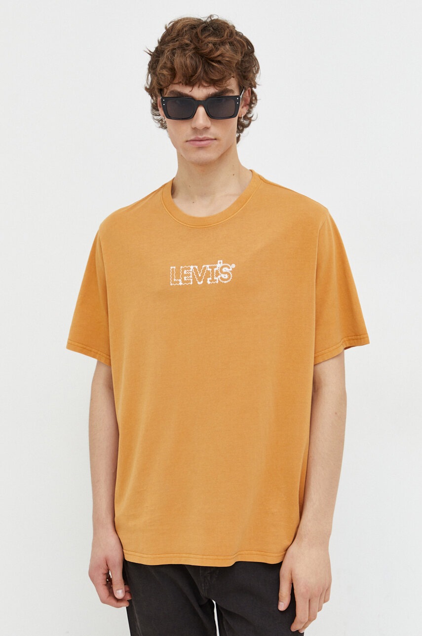 Levi’s tricou din bumbac barbati, culoarea portocaliu, cu imprimeu