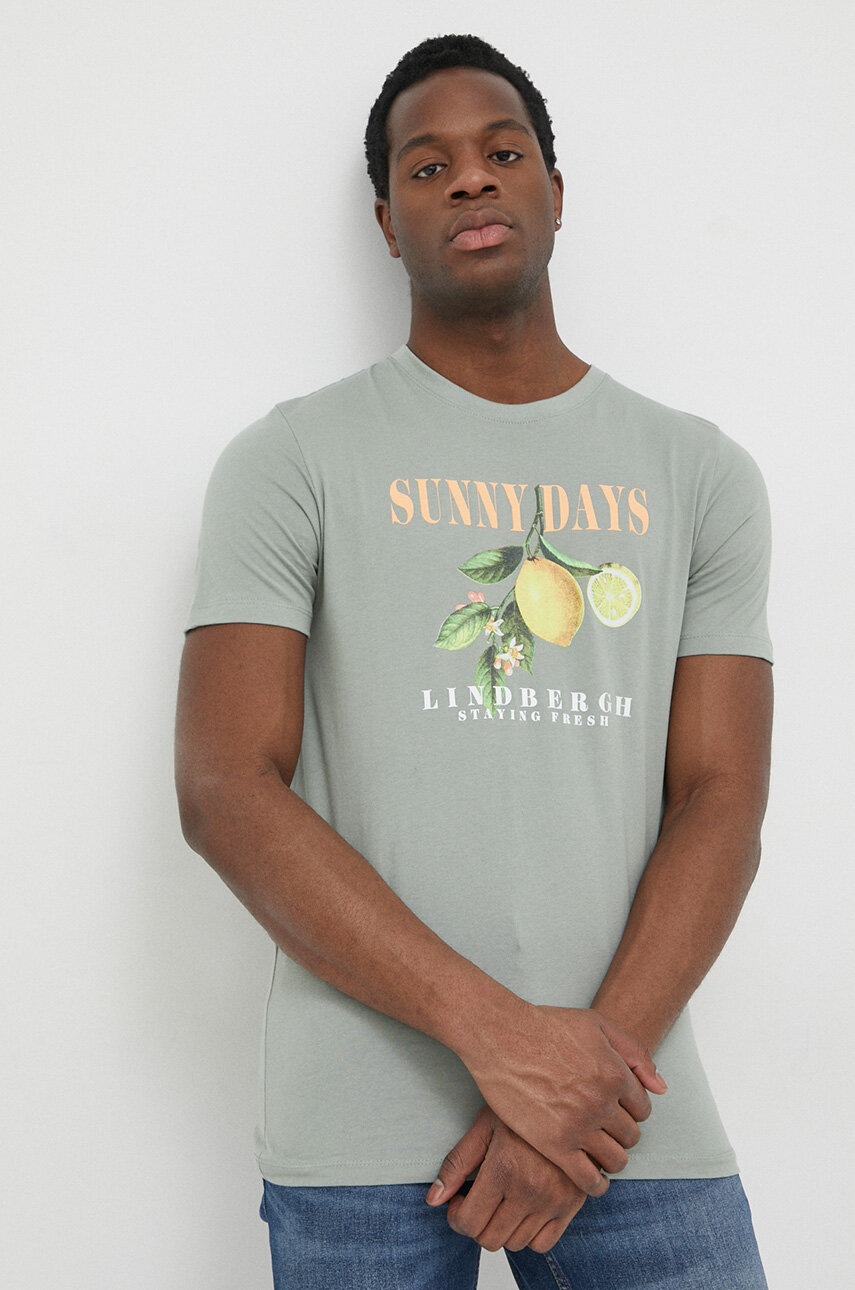 Lindbergh tricou din bumbac culoarea verde, cu imprimeu