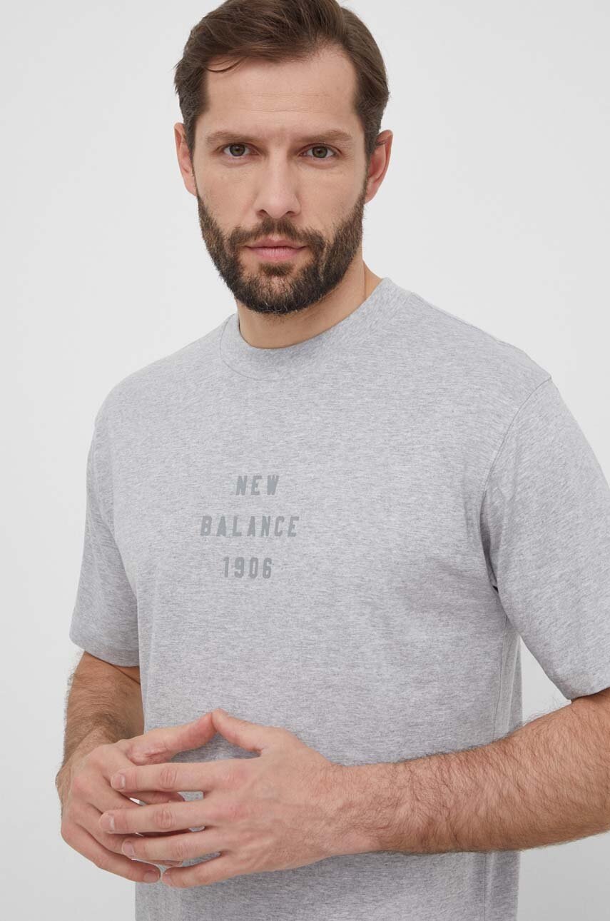 New Balance tricou din bumbac barbati, culoarea gri, cu imprimeu, MT41519AG