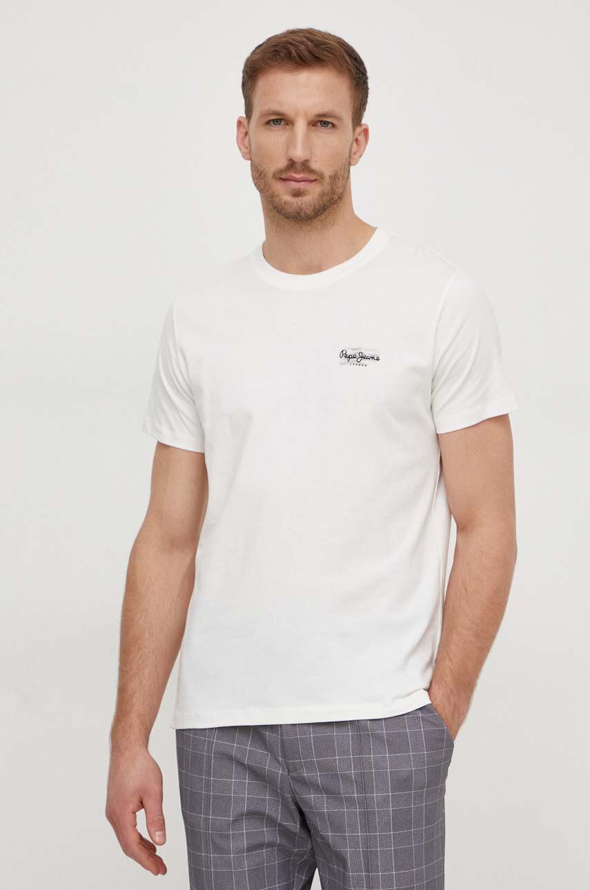 Pepe Jeans tricou din bumbac CHASE barbati, culoarea bej, cu imprimeu