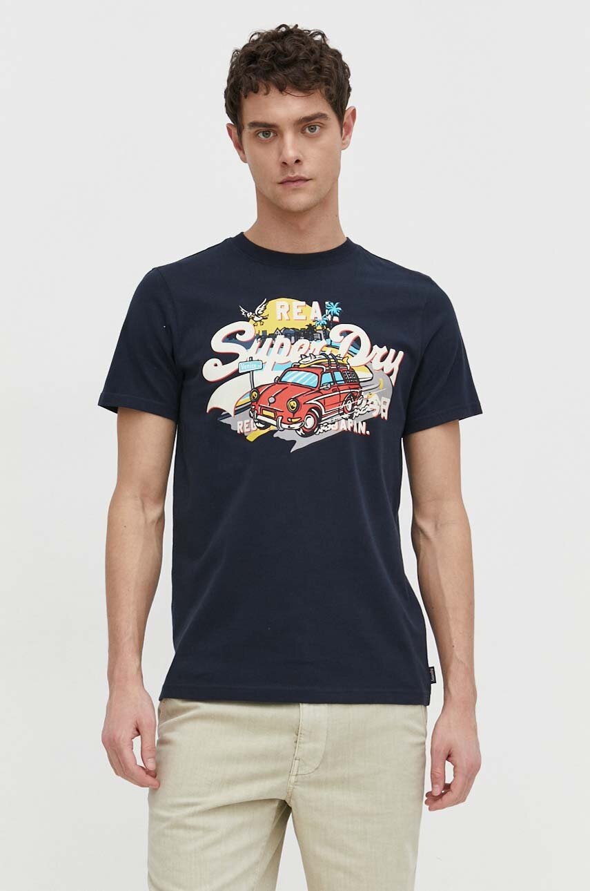 Superdry tricou din bumbac barbati, culoarea albastru marin, cu imprimeu