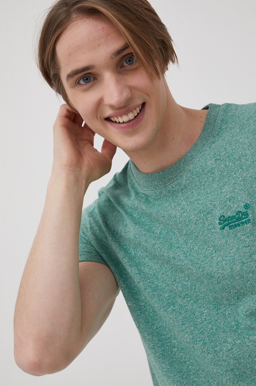 Superdry Tricou din bumbac culoarea verde, melanj
