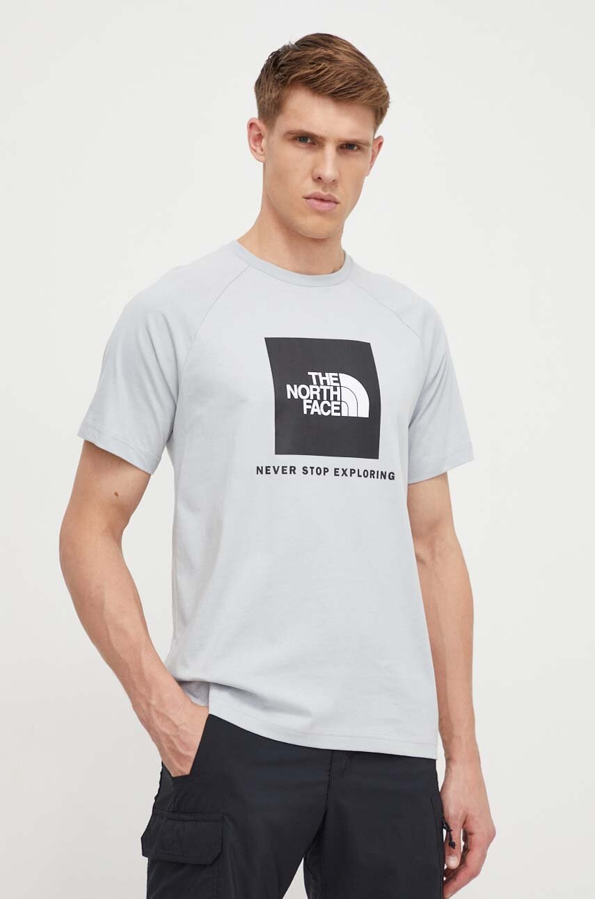 The North Face tricou din bumbac barbati, culoarea gri, cu imprimeu