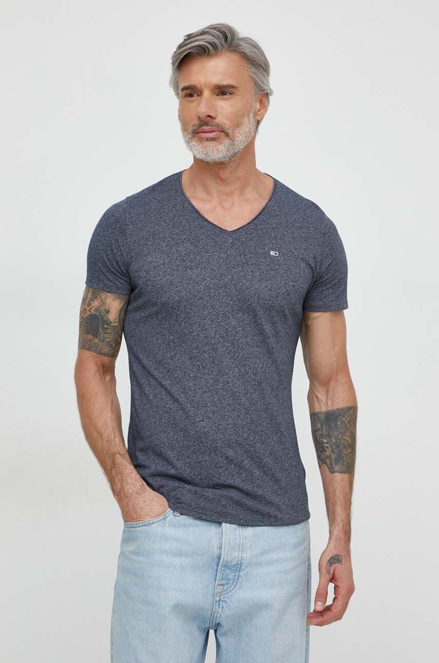 Tommy Jeans tricou barbati, culoarea albastru marin, melanj