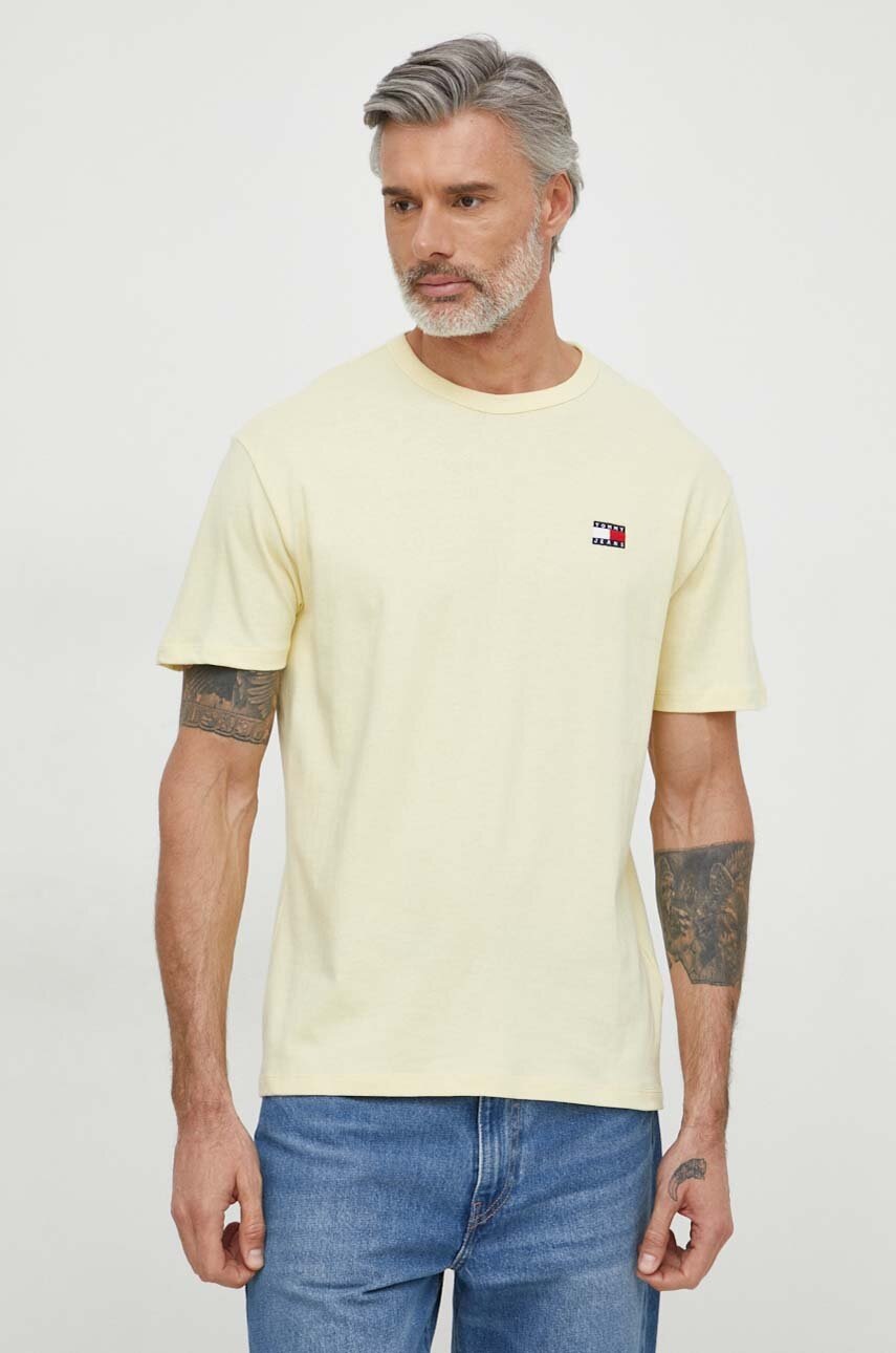 Tommy Jeans tricou din bumbac barbati, culoarea galben, cu imprimeu