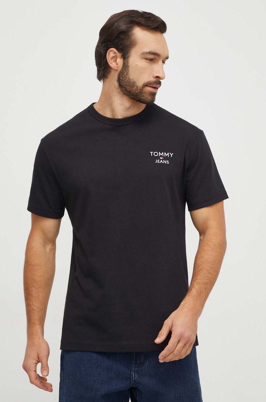 Tommy Jeans tricou din bumbac barbati, culoarea negru, cu imprimeu