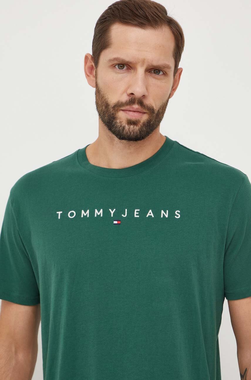 Tommy Jeans tricou din bumbac barbati, culoarea verde, cu imprimeu