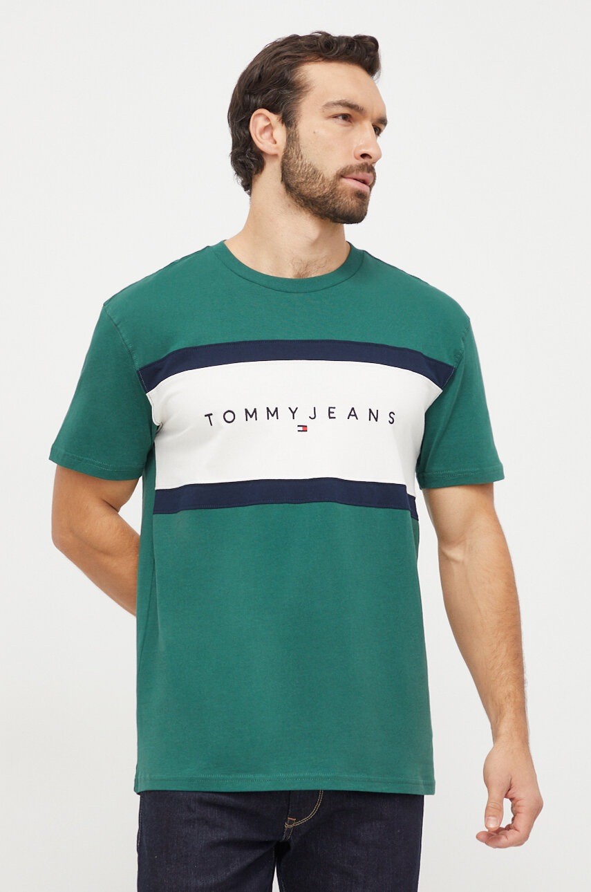 Tommy Jeans tricou din bumbac barbati, culoarea verde, modelator