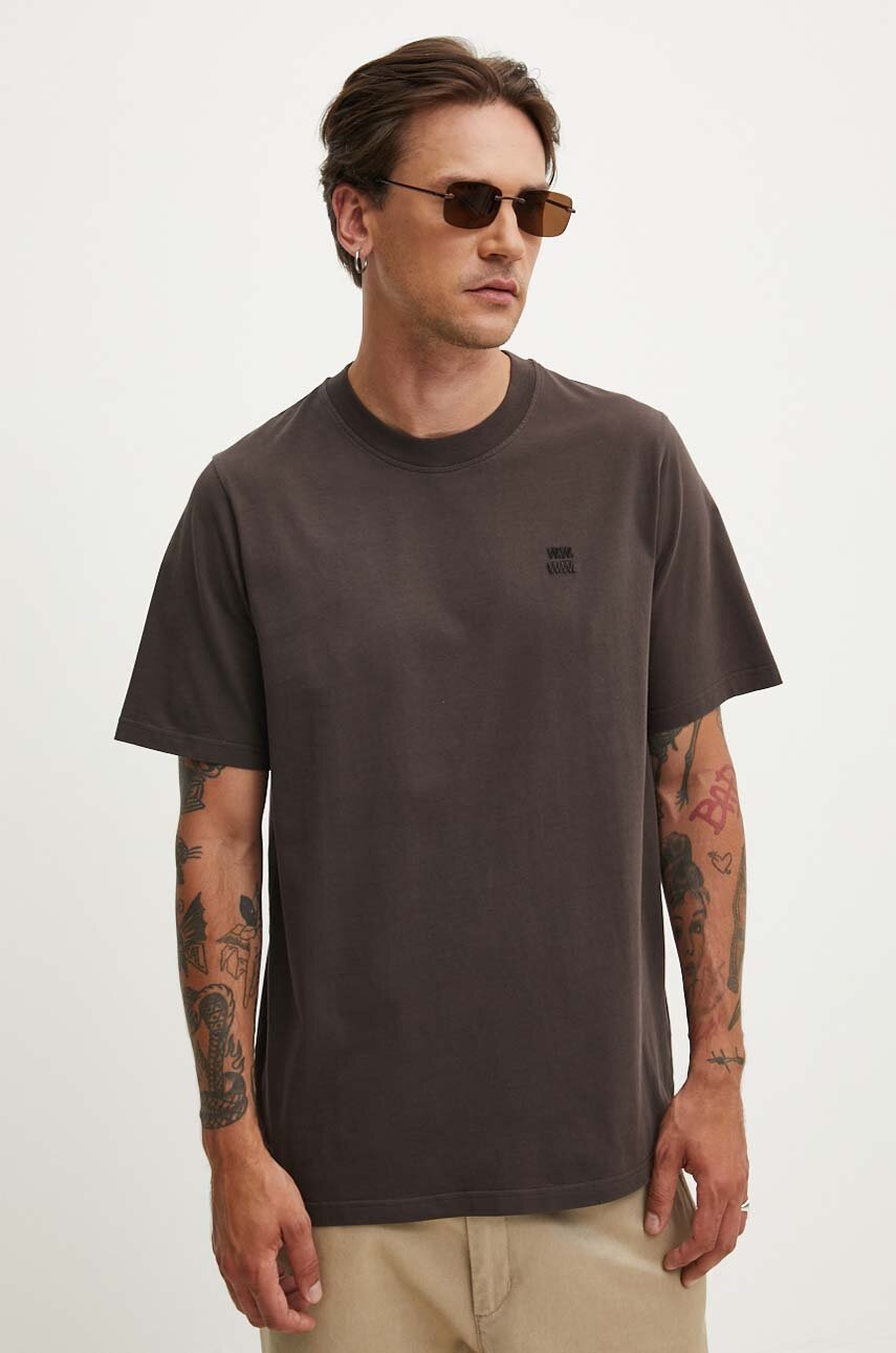 Wood Wood tricou din bumbac Bobby Double Logo bărbați, culoarea maro, uni, 12345701.2512