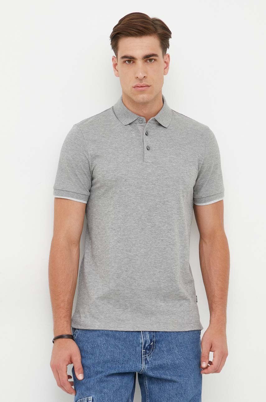 BOSS tricou polo barbati, culoarea gri, melanj
