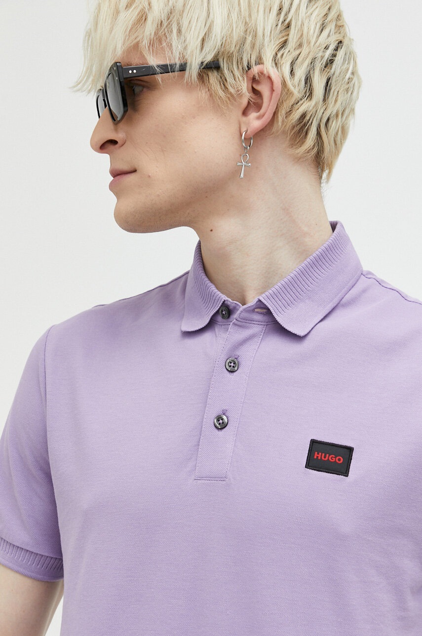 HUGO polo de bumbac culoarea violet, cu imprimeu