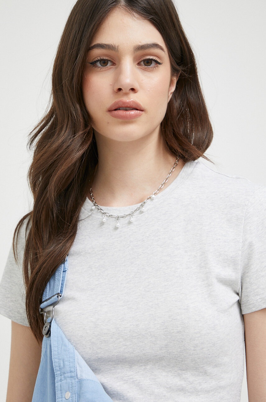 – Fason slim. – Decolteu rotund. – Tricot neted. – Material tricot flexibil si subtire. – Lungimea: 57 cm. – Latimea la subrat: 40 cm. – Dimensiunile date pentru marimea: S.
