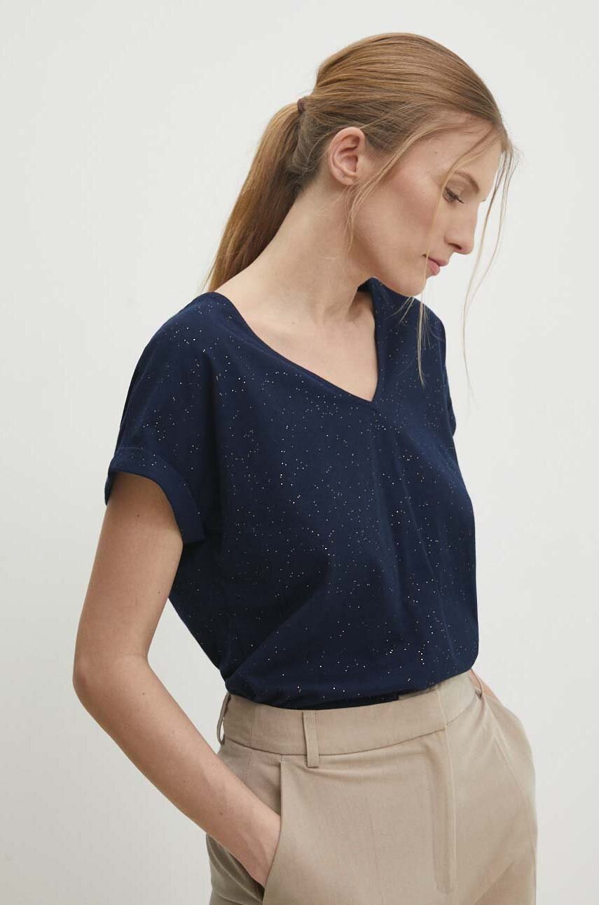 Answear Lab tricou din bumbac femei, culoarea albastru marin