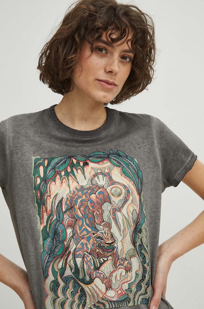 Medicine tricou din bumbac femei, culoarea gri