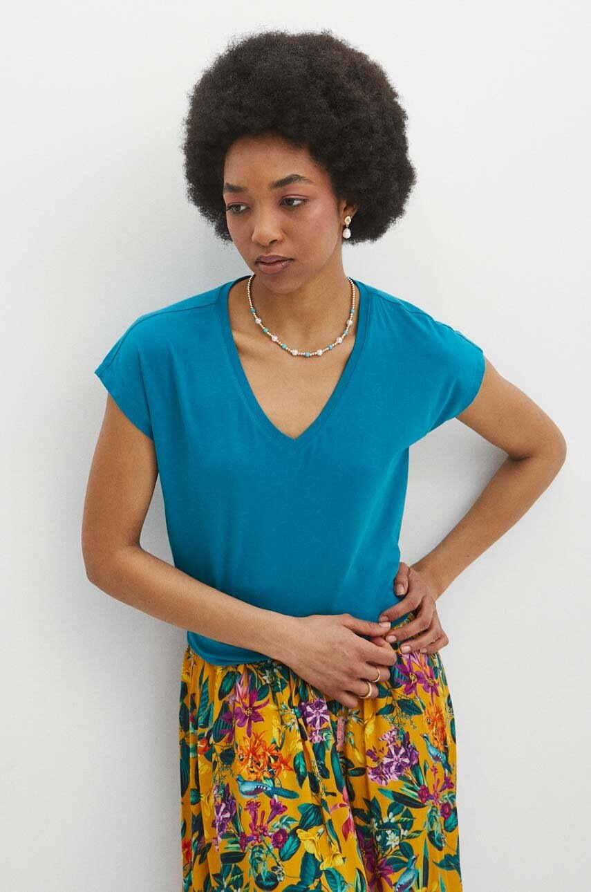 Medicine tricou din bumbac femei, culoarea turcoaz