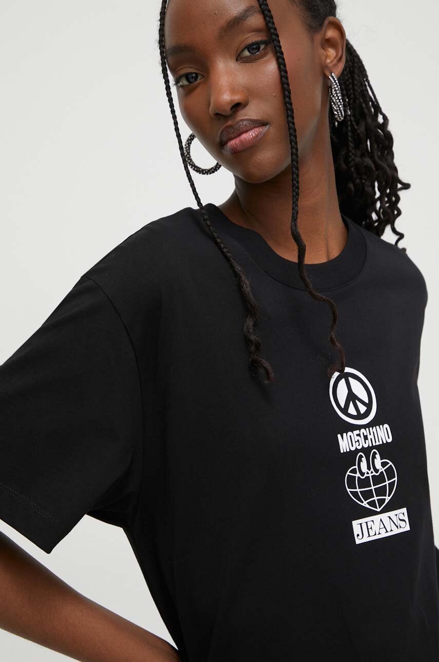 Moschino Jeans tricou din bumbac femei, culoarea negru